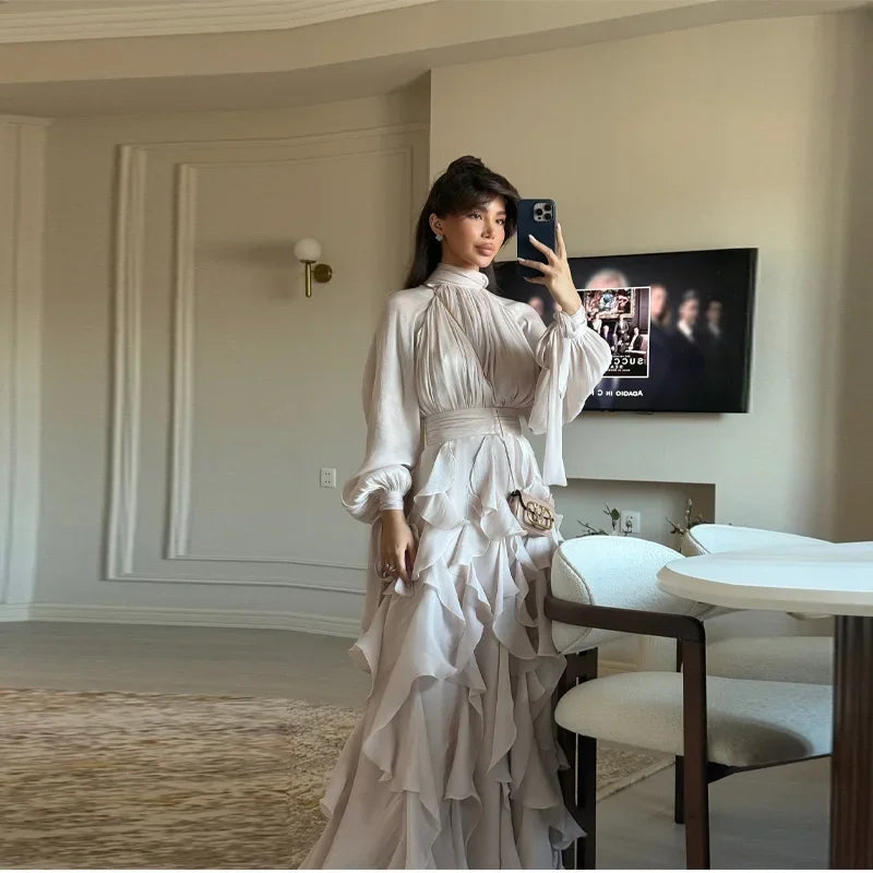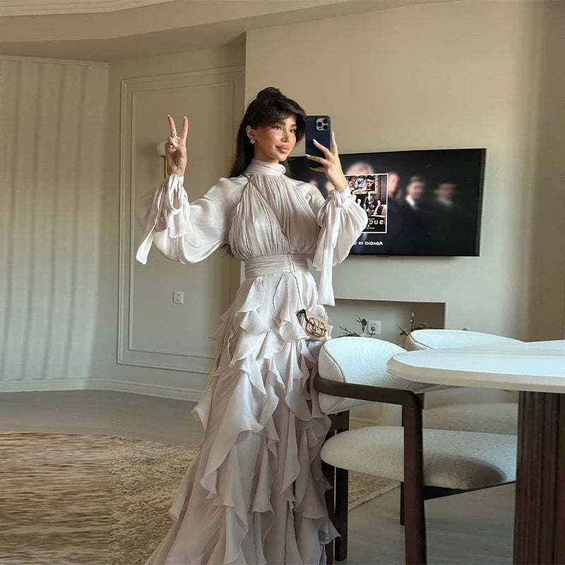 Romantic and effortlessly elegant, this dress features cascading ruffles and a flowing silhouette that moves beautifully with every step. Perfect for special occasions or dreamy days out, it’s a timeless piece that exudes feminine charm.