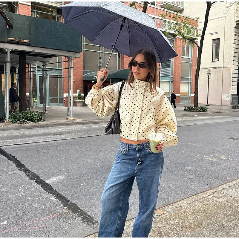 This jacket brings playful sophistication to any outfit. Featuring a classic polkadot pattern and a tailored fit, it’s the perfect piece to elevate casual looks or add charm to your office style. Stylish, lightweight, and versatile for all occasions.