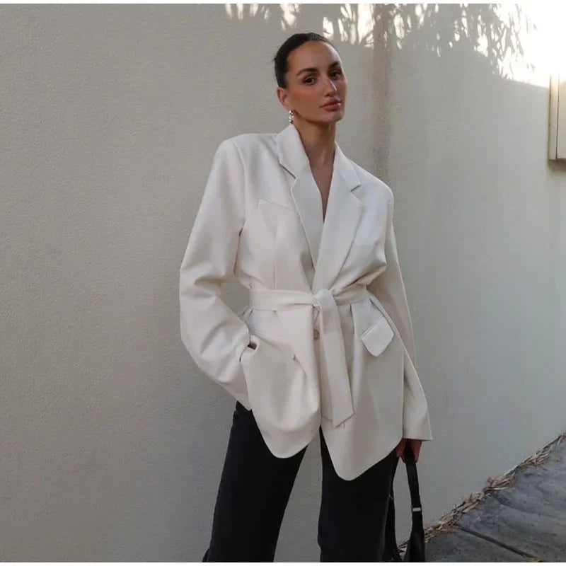 Chic and structured, this blazer jacket features a flattering belted waist that defines the silhouette with effortless elegance. Perfect for both office wear and evening outings, it blends timeless tailoring with modern sophistication.