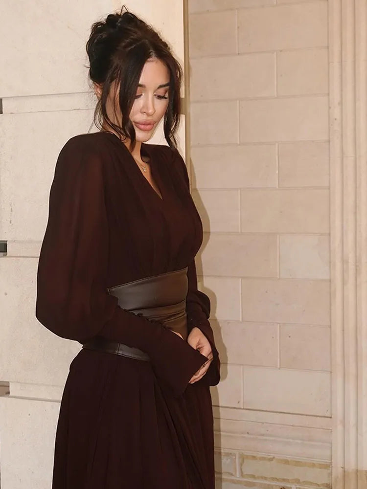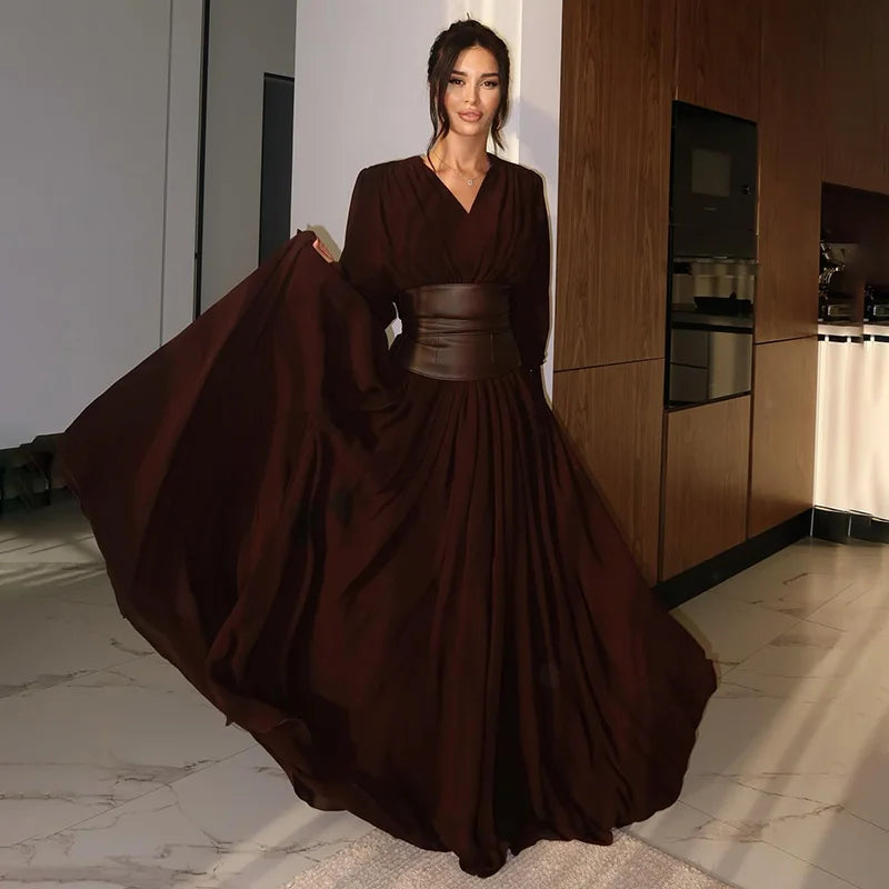 This dress exudes timeless elegance with its classic A-line silhouette and graceful long sleeves. Designed to flatter every figure, it offers a perfect balance of comfort and sophistication. Ideal for both daytime charm and evening refinement, this is a versatile staple for every wardrobe.