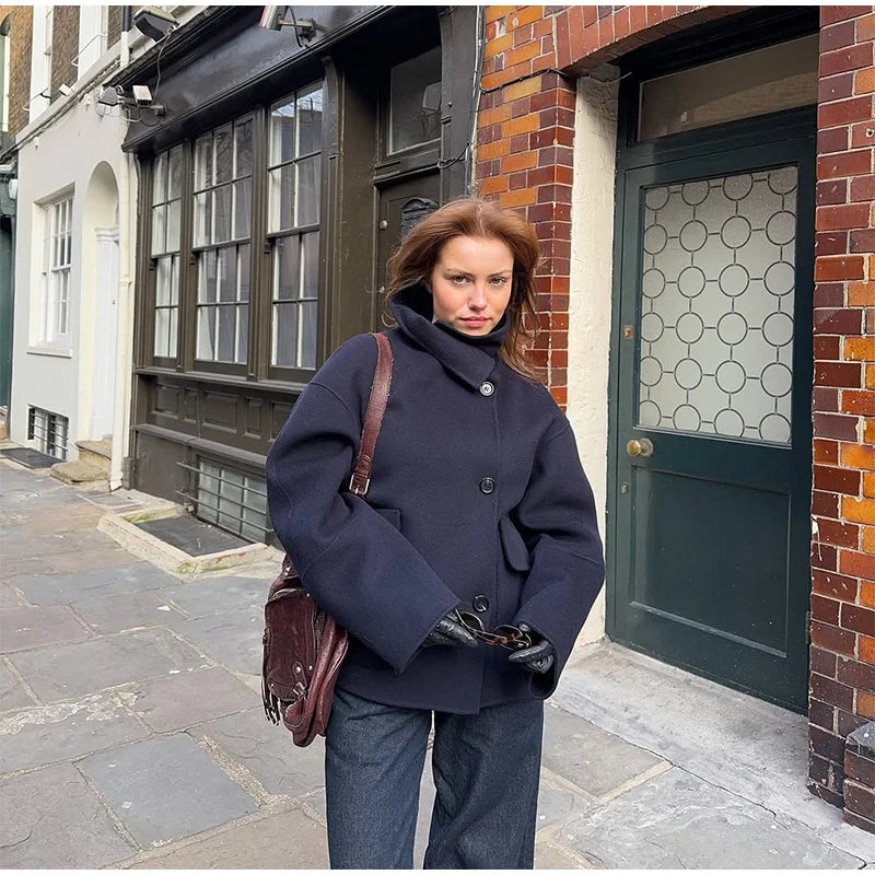 Sophisticated and warm, this coat features a structured silhouette and a high collar for a modern, polished look. Crafted from a premium wool blend, it’s the perfect outerwear piece for timeless cold-weather elegance.