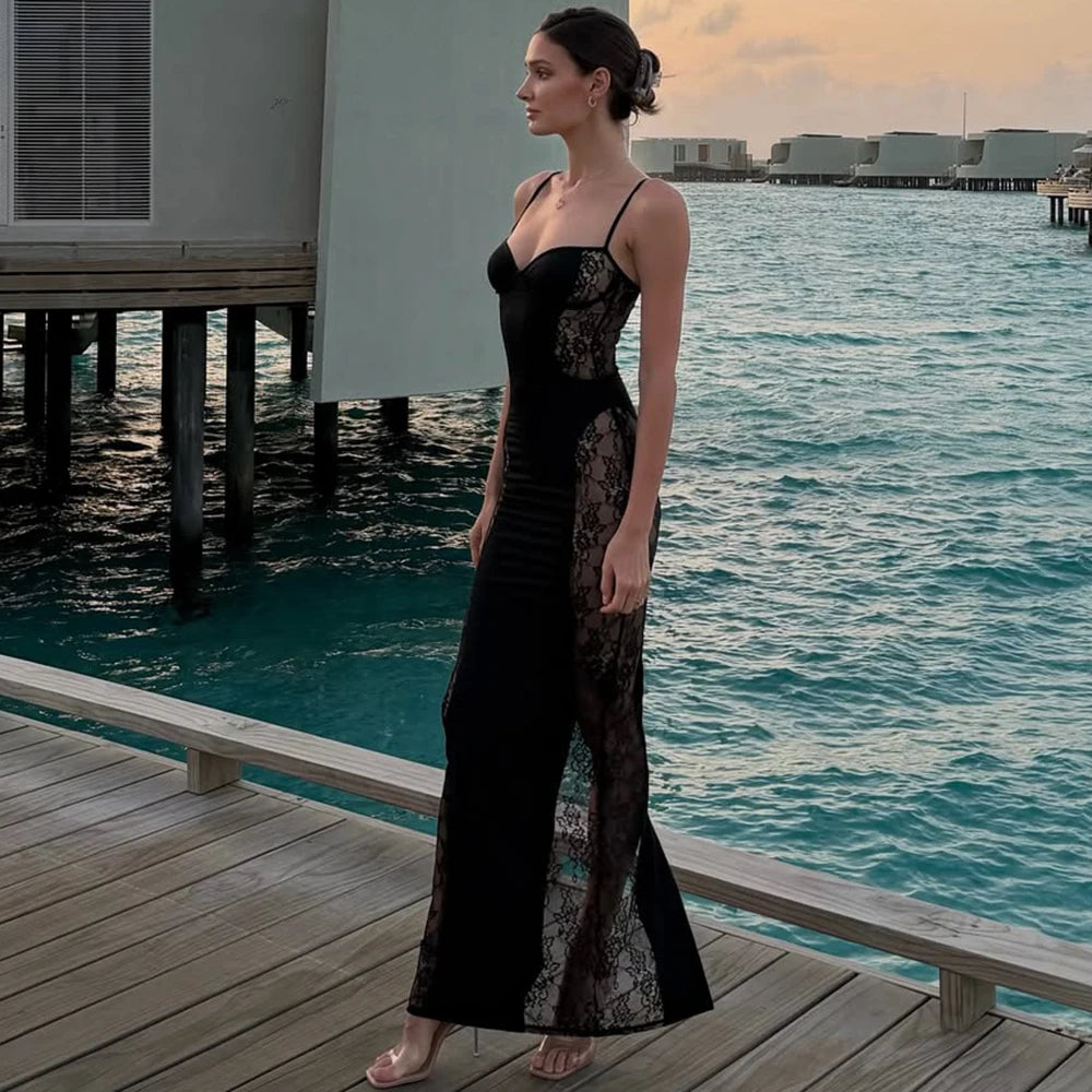 This dress combines delicate elegance with a beautifully refined silhouette. Intricate lace accents add a touch of romance, while the flattering design enhances your natural shape. Perfect for special occasions or evenings when you want to feel effortlessly graceful.