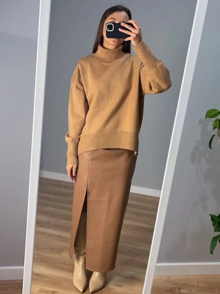 This sweater is all about cozy comfort and laid-back style. Crafted from soft knit fabric, it features an oversized fit that drapes effortlessly for a relaxed yet chic look. Perfect for pairing with jeans or skirts, this is a must-have for effortless everyday wear.