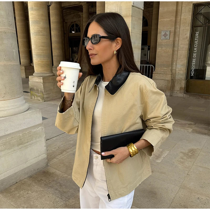 This jacket combines classic countryside charm with modern edge. Designed with structured panels and a front zip closure, it features a cozy yet refined silhouette that’s perfect for layering.