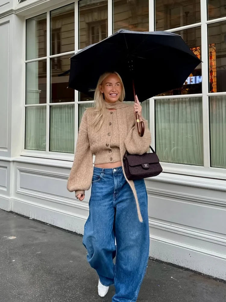 This cardigan pairs a classic cable-knit design with a matching scarf for extra warmth and style. Soft and effortlessly chic, it’s the perfect layering piece for cooler days. A versatile set that adds comfort and elegance to any outfit.