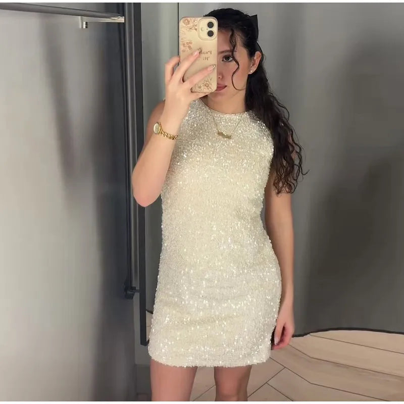 This dress sparkles brilliantly with its all-over sequin finish, creating a show-stopping, luminous look. Its elegant bow detail adds a touch of femininity and charm, balancing the bold sparkle with refined style. Perfect for festive events and nights out, it ensures you stand out with effortless glamour.