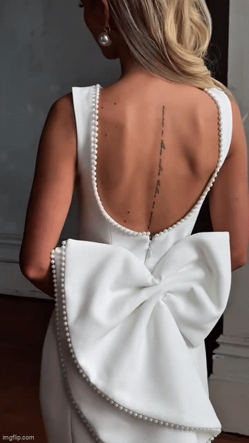 Timeless and feminine, this dress contours your silhouette with a sleek, form-fitting design accented by a graceful bow detail. Effortlessly elegant, it’s the perfect blend of sophistication and charm for any special occasion.
