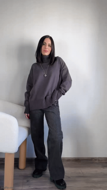 This sweater is the epitome of cozy sophistication. Crafted from soft knit fabric, it features a classic turtleneck design that offers both warmth and elegance. Perfect for layering or wearing on its own, this timeless piece brings effortless comfort and style to your cold-weather wardrobe.